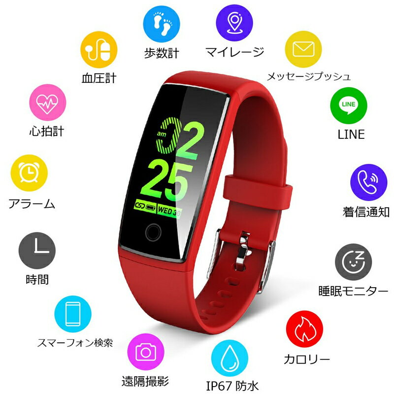 itDEAL スマートウォッチ line 対応 活動量計 心拍計 血圧計 歩数計 IP67防水 USB式 レディース メンズ 日本語 着信通知 電話通知 睡眠検測 アラーム 時計 血圧 腕 リストバンド 父の日 敬老の日 母の日 iphone 対応 android 対応 スマート ウォッチ ランニングウォッチ