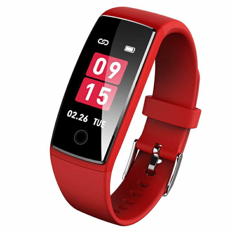カラー 有機EL 本革 Q11V スマートウォッチ スマートブレスレット 心拍計 活動量計 IP67防塵防水 スマートウォッチ フィットネスリストバンド 血圧計 睡眠 健康管理 アクティブトラッカー ストップウォッチ /カメラ操作 色: レッド (超美麗カラー有機EL)