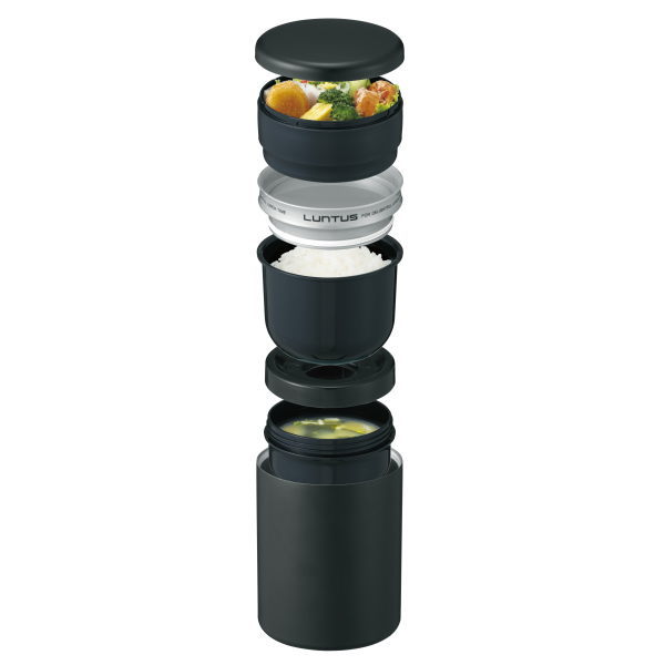 ・ カラー / ブラック・ 製品サイズ / 約 幅 14.1 × 奥行 14.1 × 高さ 22.8 cm・ 材質 / 保温ケース : ステンレス鋼(アクリル樹脂塗装) ご飯容器フタ : ポリプロピレン、発泡断熱材 おかず容器フタ、ご飯容器、おかず容器、スープ容器、スープ容器フタ、箸箱 : ポリプロピレン ご飯容器フタ、おかず容器フタ、スープ容器フタ : シリコーンゴム 箸 : AS樹脂 専用ランチバッグ : ポリエステル、発泡PE、ナイロン、亜鉛合金・ 容量 / ごはん容器 : 390ml(お茶碗1.9杯分) おかず容器 : 400ml スープ容器 : 250ml・ 生産国 / 中国・ ボトルタイプの筒型保温ランチボックス。