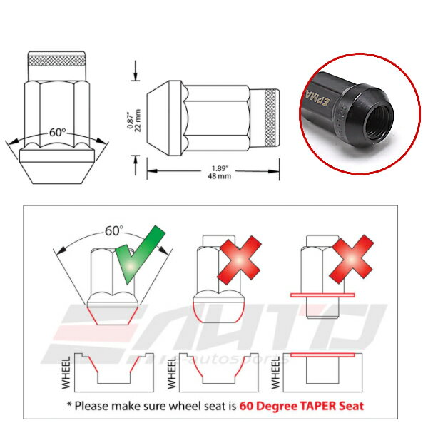 ■貫通スチールロングナット ■カラー:マットブラック ■セット内容:24個+ソケット付属 ■直径:22mm ■L=48mm ■17HEX ■座面テーパー角:60度 【注意事項】 ★